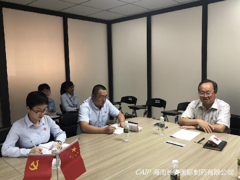 9月19日下午,??诟咝聟^(qū)管委會(huì)副主任韓青蒞臨海南長(zhǎng)安國(guó)際制藥有限公司黨支部和??趪?guó)家高新區(qū)藥谷一期(國(guó)科園)流動(dòng)黨支部講授黨課。海南長(zhǎng)安國(guó)際制藥有限公司黨支部書記汪立冬攜支部黨員、預(yù)備黨員及入黨積極分子熱情歡迎韓青主任的到來(lái),并認(rèn)真聆聽了黨課。