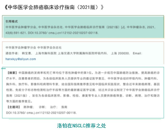 【洛鉑重磅】洛鉑進(jìn)入最新版《中華醫(yī)學(xué)會(huì)肺癌臨床診療指南》2021版
