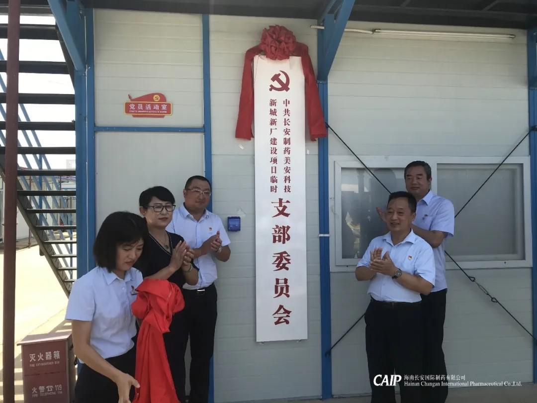 2020年7月1日上午,在慶祝中國共產(chǎn)黨建黨成立99周年之際,長(zhǎng)安制藥美安科技新城新廠建設(shè)項(xiàng)目臨時(shí)黨支部成立大會(huì)順利召開。高新區(qū)兩新組織黨委專職副書記傅愛萍、海南長(zhǎng)安制藥支部書記汪立冬、海南萬泰支部副書記孟晨以及長(zhǎng)安制藥美安科技新城新廠建設(shè)項(xiàng)目臨時(shí)黨支部全體黨員參加成立大會(huì)及揭牌儀式。